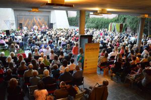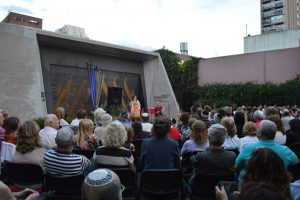 La convocatoria supero todas las expectativas y los asistentes colmaron de lado a lado los hermosos jardines que rodean la sinagoga. El espectáculo tuvo dos partes y en medio de ambas se encendió la 6° vela de Hanuka, ceremonia que condujo el Rabino Alejandro Avruj.