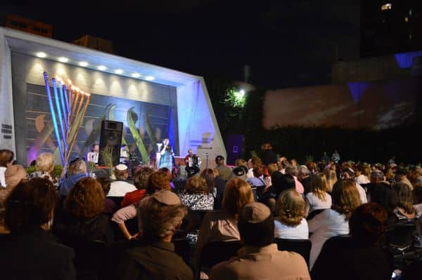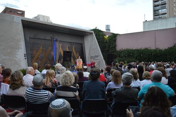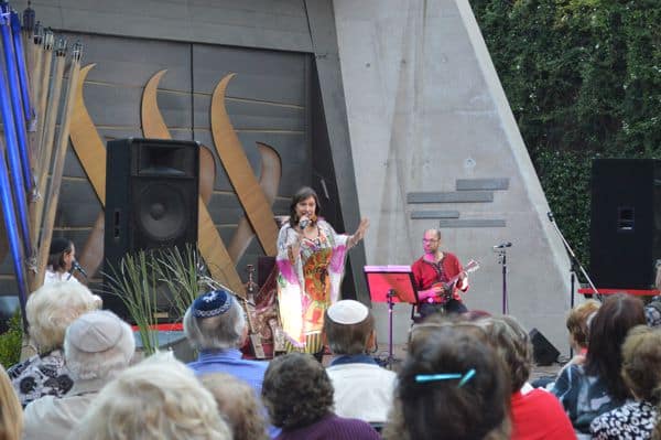 La Comunidad Amijai y eSefarad ofrecieron ayer en los jardines de la sinagoga de la comunidad, en el barrio de Belgrano, un concierto de música sefaradí con Liliana Benveniste y su grupo de músicos, como celebración del 2° Día Internacional del Ladino, donde también se encendió la 6° vela de Hánuka.