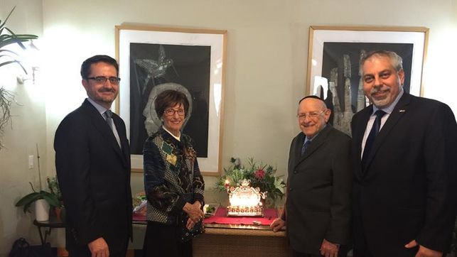 Durante la ceremonia, Schiff habló de lo que representa esta festividad milenaria y después de prender la vela dio una bendición al Gobierno español, a los españoles, los israelíes, los estadounidenses y la humanidad en su conjunto.