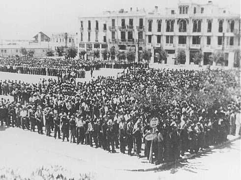 Uno de los primeros pasos del governo muevo fue a rejistrar todos los mansevos judyos de Salonik. En las afueras del kuartie ande morava mi nono, avia un terreno ancho, una area de tierra vazia. Para ayi fueron yamados todos los djovenos a vinir i prezentarsen temprano por la maniana. Mi nono tomo en su mano el livro de Tehilim, dyo un bezo a mi nona, i despues a la mezuza, i se dirijo al akel terreno. Ayi se asento sovre una piedra grande, i empeso a meldar psalmos de Tehilim, empesando de los primeros biervos del livro asta el ultimo kapitolo (150) ke se termina kon el pasuk «Toda alma alave a Adonay, aleluya». En tal momento, el levanto sus ojos i miro: el terreno estava enteramente vazio de kualker persona. Todos los movilizados avian sido rejistrados i fueron yevados por kamiones a una baza militar serkana…