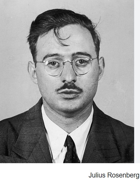 En 1945 los emleyadores de Julius Rosenberg en «U.S. Army Signal Corps» entendyeron ke es miembro del muvimyento komunisto i lo demisyonaron de su lavoro, por la razon: «Sospechozo de aktividad komunista en organizasyones radikalas». No saviyan ke era espiyon. Esto era parte de una politika de purifikasyon de komunistos en los sentros de Lavoro.