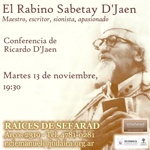 El próximo martes 13 de noviembre de 2012 la conferencia será sobre "El Rabino Sabetay D'Jaen" contado por su nieto Ricardo D'Jaen, quien fuera Gran rabino de Monastir, Gran rabino de la República Argentina y de Uruguay, y finalmente Gran rabino sefardí de Rumania , ver artículo >>.