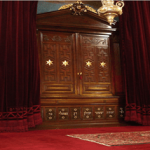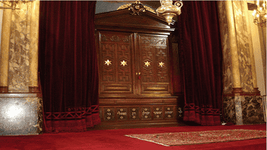 El Tabernáculo tiene grandes proporciones. Una pequeña puerta de hierro forjado lo separa del público. Dos hermosas cortinas de terciopelo rojo que forman una puerta cuando se abren, esconden el lugar sagrado de nuestros ojos. El Thamid finamente cincelado honra a su donante, la Sra. Veuve David Léon. Delante del tabernáculo y superpuesto en el segundo porche hay una plataforma, cuya parte posterior está reservada para el organista y el haham y la parte frontal para el público.