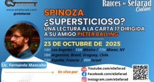 Read More »Raíces de Sefarad/Online: SPINOZA, ¿SUPERSTICIOSO? Una lectura de la carta 17 dirigida a su amigo PIETER BALLING con el Lic. FERNANDO MANCEBO – Jueves 23 OCTUBRE 2025, 18 hs (Argentina)