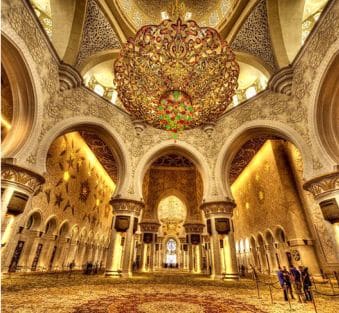 La Grande meskita de Sheikh Zayed en Abu Dabi, la kapital de los Emiratos Arabos Unidos, es la mas ermoza meskita del mundo. Kosto 545 Milliones de Dolares. 40.000 personas i mas pueden rezar enjuntos. Es una ovra klasika i moderna en mizmo tiempo. Se empeso a fraguarla en 1996 i terminaron los echos en 2007. Es illuminada por kandelabros de oro de 24 karat i el grande kandelabro (aranya) , de oro tambien, es el mas grande del mundo kon sus 10 metros de diametro, 15 metros de altura i un pezgo de 12 tonas…