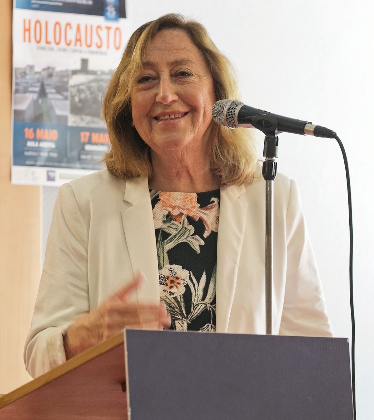 Esther Mucznik hablando en una conferencia. Derechos de fotografía reservados