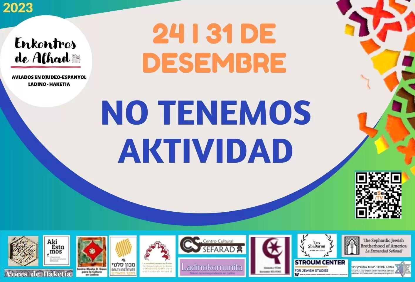 La Ermandad Sefaradi de Amerika (ES), el Sentro Stroum de la Universidad de Washington (UW), Voces de Haketia (VH) – Muzeo del Patrimonio Djudio de las Komunidades de Salonika i Grecha en Memoria de Leon Recanati – Ladino 21