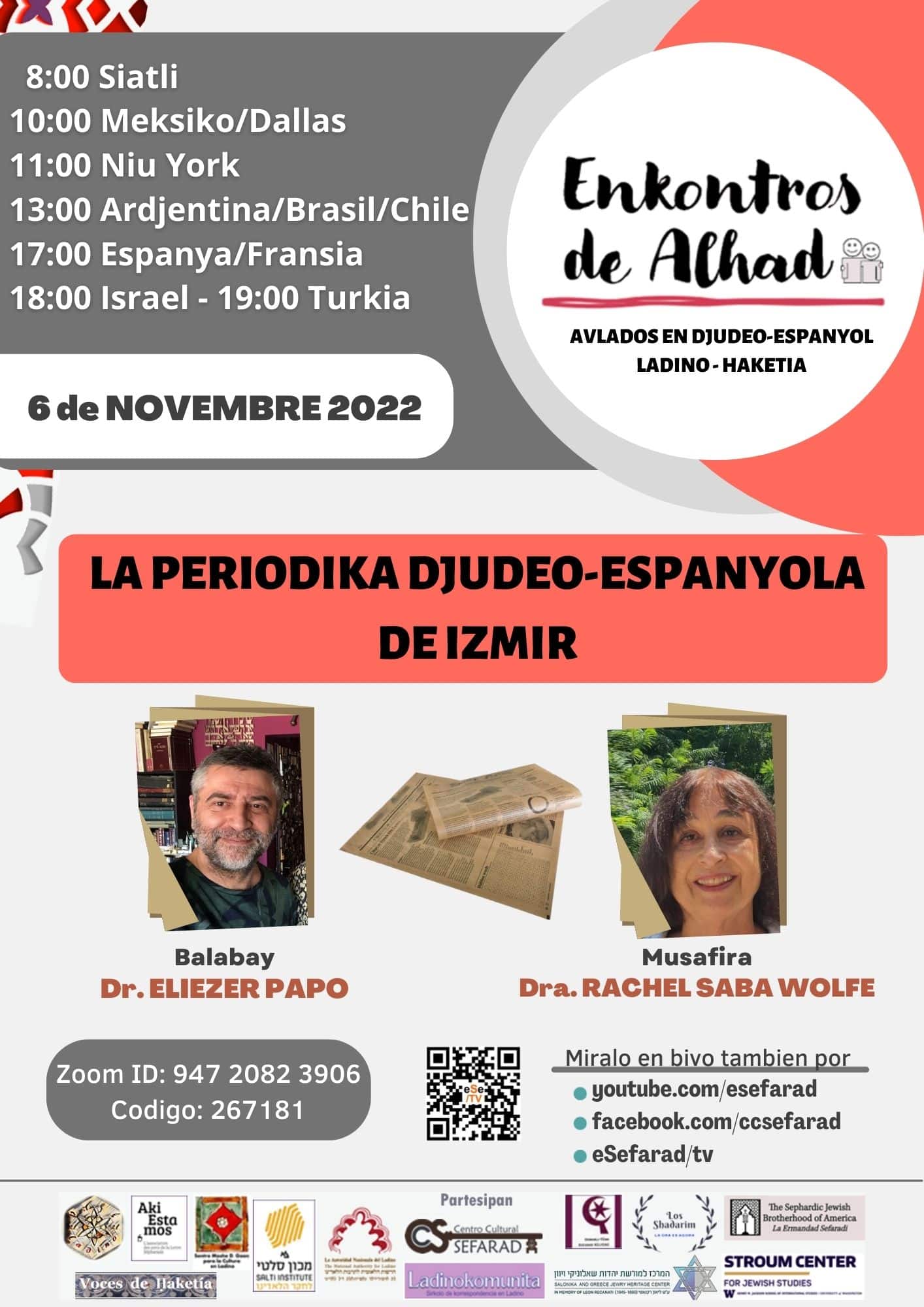 Vos invitamos a muestros Enkontros de Alhad ande mozotros los Balabayes endjuntos kon destakados Musafires kada semana vos kontaremos sovre haberes, istorias, tradisiones, kozas muevas, kozas viejas i mas…