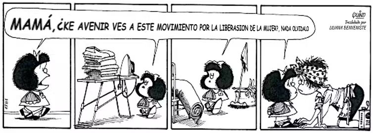 karakteres devian tener nombre kon la letra M al empesijo, por morde esto kria Mafalda. A la fin Agens no aze la kampanya i Quino se keda ko los dibujos ke ya avia kriado. Ansi Mafalda, la ijika de kaveyos pretos ke no le plaze la supa i siempre esta en kontra de lo ke azen i pensan los mayores, se publiko por la prima vez el 29 de septembre de 1964 en la gazeta semanal Primera Plana de Buenos Aires. El 9 de marso de 1964 pasa a la pajina de umor del jurnal El Mundo i ansi el karakter Mafalda tiene ancho sukseso i se konose en toda Amerika del Sur i tambien en Evropa. quino.com.ar