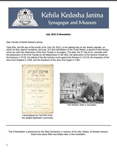 Attached below is this month’s E-Newsletter. If you would like to sponsor a KKJ E-Newsletter in Honor or in Memory of someone, please reach out to us at museum@kkjsm.org. We hope you enjoy this month’s E-Newsletter!