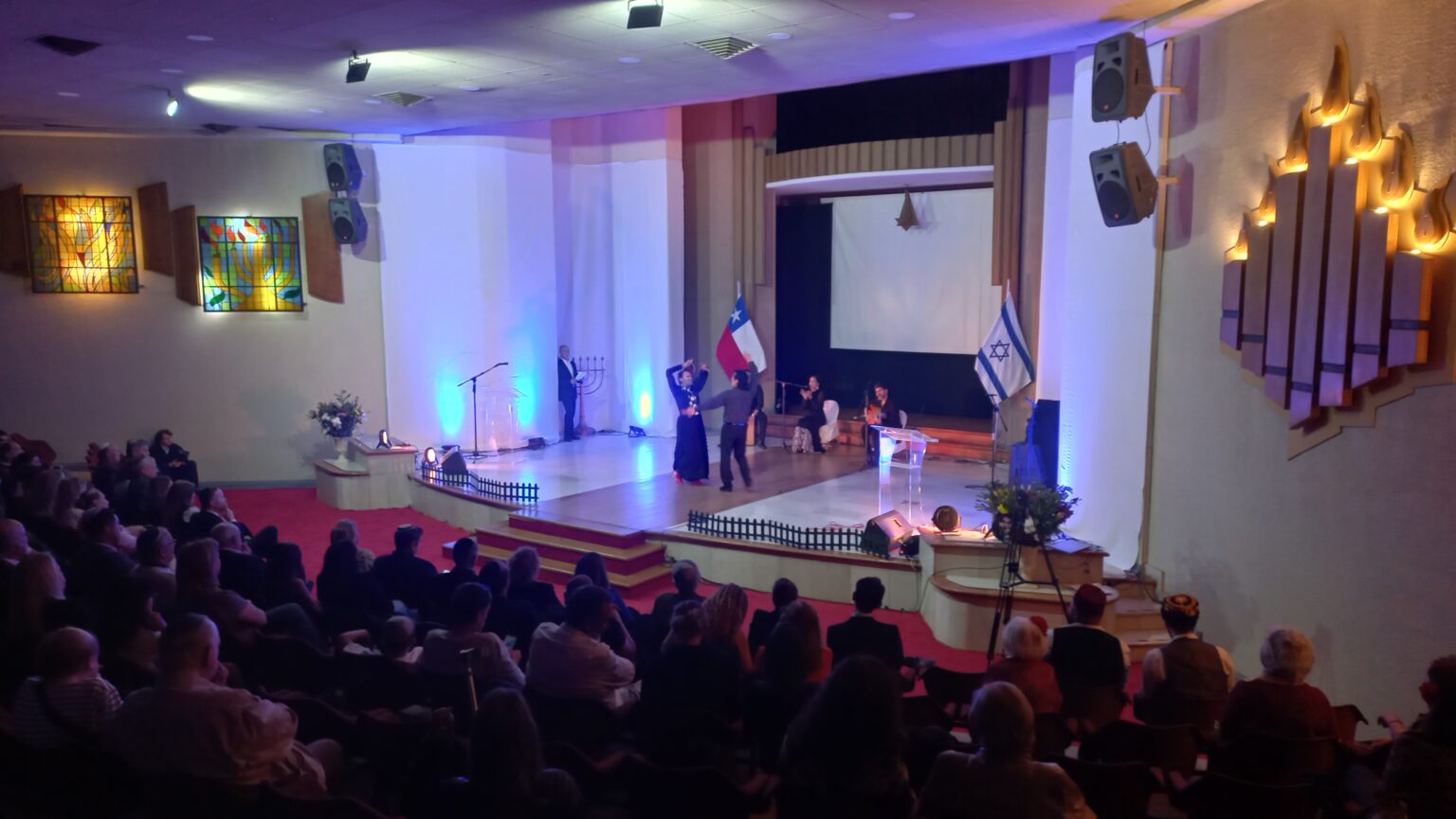 La inauguración estuvo marcada por un baile de fuerte tradición turca, la magistral presentación del Coro Sefarad, y un emocionante acto de flamenco que llenó de música y taconeo toda la sinagoga, creando una atmósfera única de encuentro cultural. Además, durante esta noche se hizo entrega de cuatro premios a figuras comunitarias: Evelyn Schatloff, Tea Guttmann, Jaime Cohen y Alberto Alvo, en reconocimiento a su generosidad, entrega y activa participación en diferentes instancias del ishuv comunitario. También se hicieron presentes las palabras del embajador de Israel en Chile, Peleg Lewi, del presidente de la CJCH, Alfredo Mizraji, y de la presidenta de la Comunidad Sefaradí, Mery Nachari, quienes subrayaron la importancia de transmitir este legado a las nuevas generaciones.
