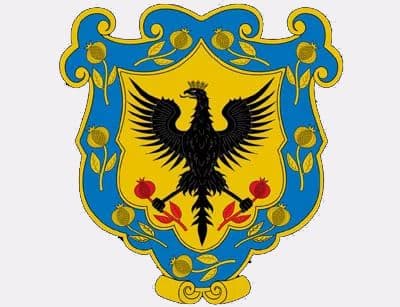 Escudo colonial de la ciudad de Bogotá, Colombia (Antiguo Imperio Español) que adopta las armas otorgadas inicialmente al Nuevo Reino de Granada por medio de la Real Cédula dada en Valladolid el 3 de diciembre de 1548 Foto: Wikipedia – CC BY-SA 4.0
