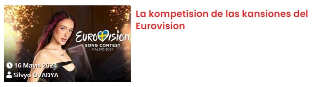 La Seksion en ladino/djudeo-espanyol del djurnal Shalom: «La kompetision de las kansiones del Eurovision» i otros artikolos del 16/5/2024