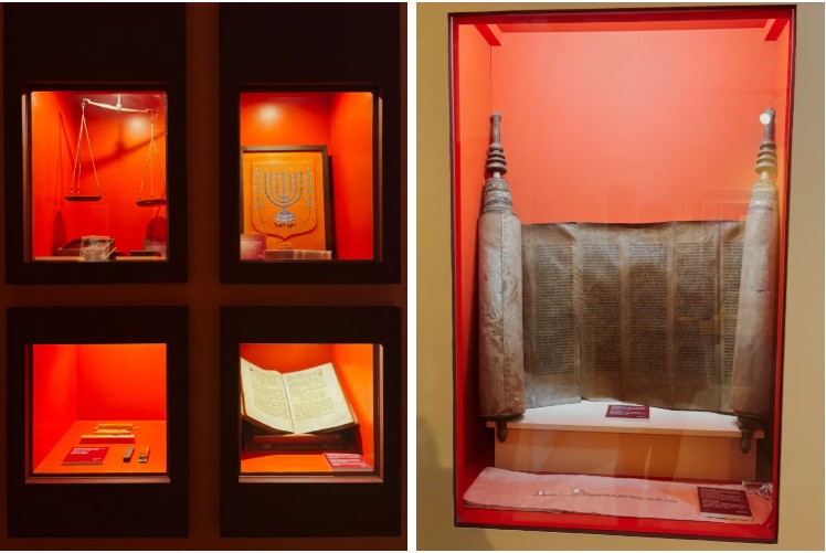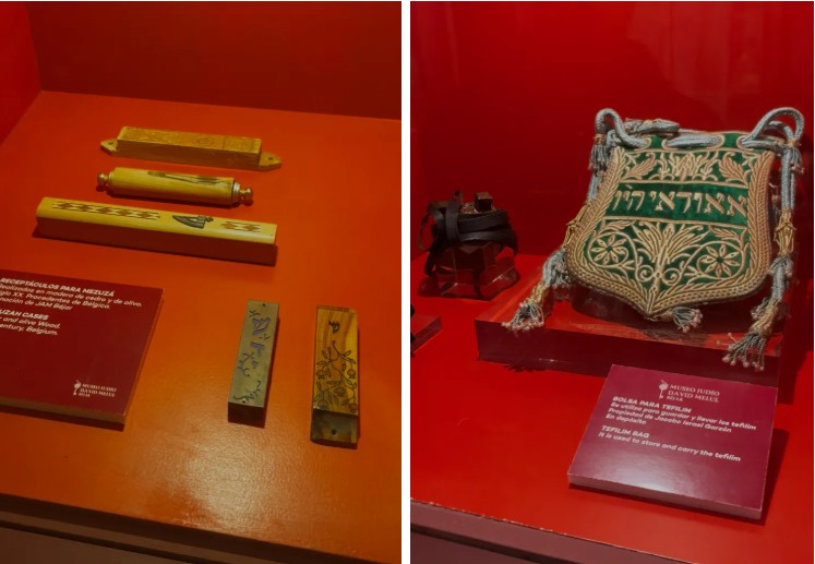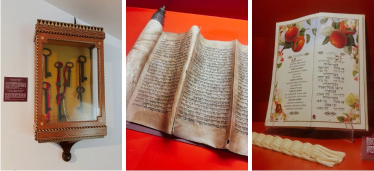 Aquí verás cómo era la indumentaria ritual, como el talit (un manto) y la kipá (mítico casquete redondo para cubrir la coronilla), y encontrarás mucho objetos de culto y celebración, entre ellos varios ejemplares de menorá y janukiot (candelabro de nueve brazos) y dos rollos del Sefer Torá, un rollo manuscrito sagrado que contiene los libros de Génesis, Éxodo, Levítico, Números y Deuteronomio.