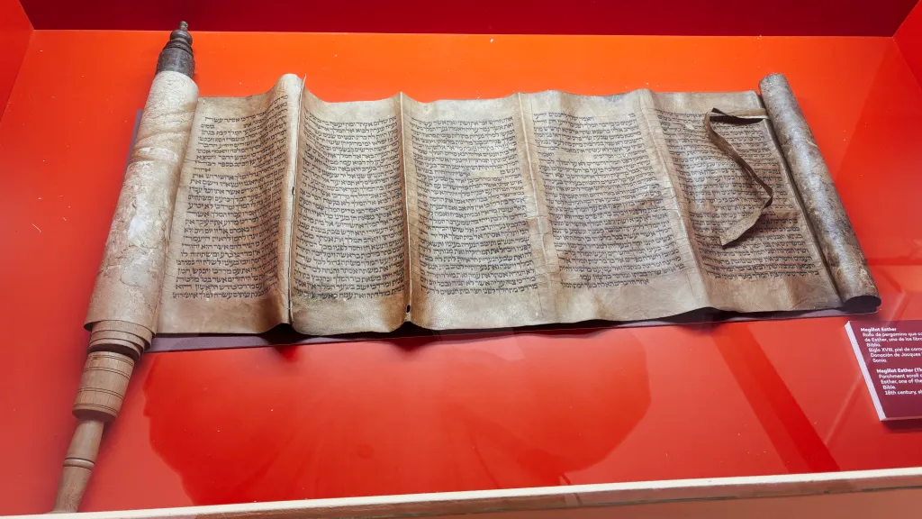 Por supuesto, no te pierdas nada de lo que hay en las vitrinas: un Libro del Éxodo del siglo XVIII, monedas con la estrella de David, una ánfora de plata decorada con una menorá (candelabro de siete brazos)…