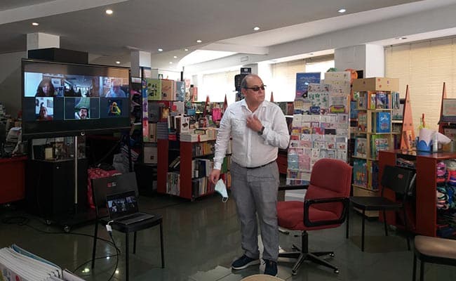 El profesor Jesús Jambrina presentó las Jornadas Sefardíes de una forma muy original, pues eligió la Librería Jambrina, que rige María José Jambrina para la ocasión, y, además, conectó con varios intelectuales del mundo sefardí vía online: eruditos de Cuba, Israel y Madrid intervinieron esta jornada inicial IX Congreso Internacional, este año con el título de Isaac Campantón (1360-1463), su obra, su tiempo y sus discípulos.