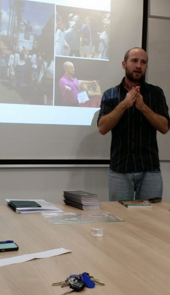 Golan Barman, estudiante en medesina en la Universidad Tel Aviv, mos prezento un rezumen de su teza sovre los elementos ke afektan el DNA del puerpo umano. En su ermoza projeksion pudimos ver komo elementos, komo el sol o la kimoterapia, dezazen las selulas i danyan la DNA.