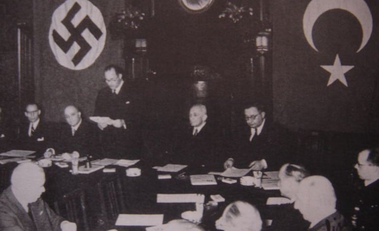 Şükrü Saracoğlu habla mientras se firma el Acuerdo de Amistad entre Turquía y la Alemania nazi