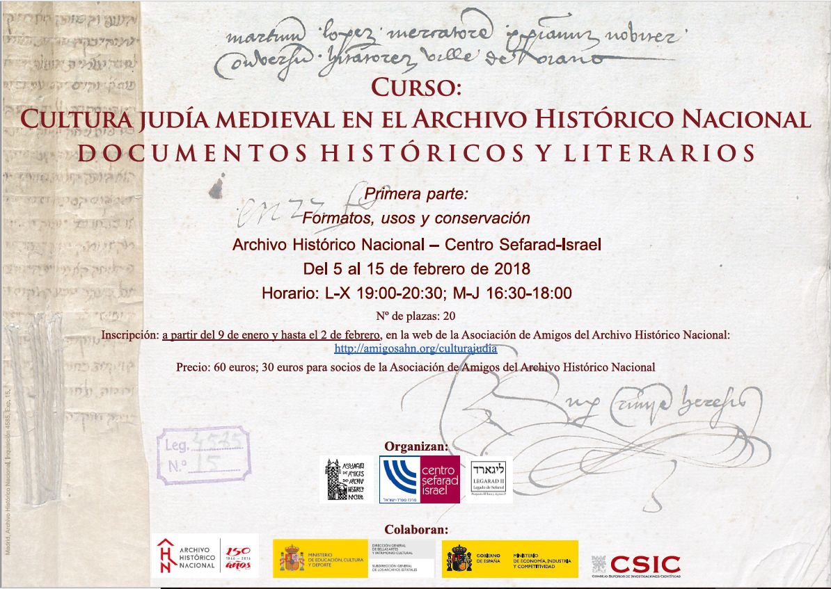 El objetivo del curso es dar a conocer de primera mano los resultados de la investigación actual con fuentes documentales en hebreo, latín y romance que se conservan en el Archivo Histórico Nacional, y que se refieren a diversos aspectos culturales y sociales de los judíos y conversos de Sefarad …
