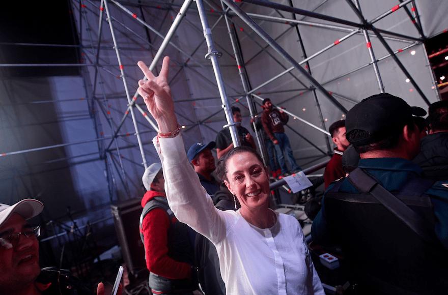 Claudia Sheinbaum Pardo saluting supporters at the Zocalo Square in Mexico City after winning the mayoral election, July 2, 2018. (Pedro Pardo/AFP/Getty Images) (JTA) – Mexico City elected a Jewish woman as mayor Sunday — setting two firsts for the largest city in North America. A woman had previously been …
