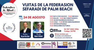 Read More »ENKONTROS DE ALHAD – 24 AGOSTO 2025 – VIJITAS DE LA FEDERASION SEFARADI DE PALM BEACH – Balabay: BRYAN KIRSCHEN – Musafir: ROBERT ALTABET – A las 13 oras (Arjentina) x Zoom – Mas orarios en el anunsio